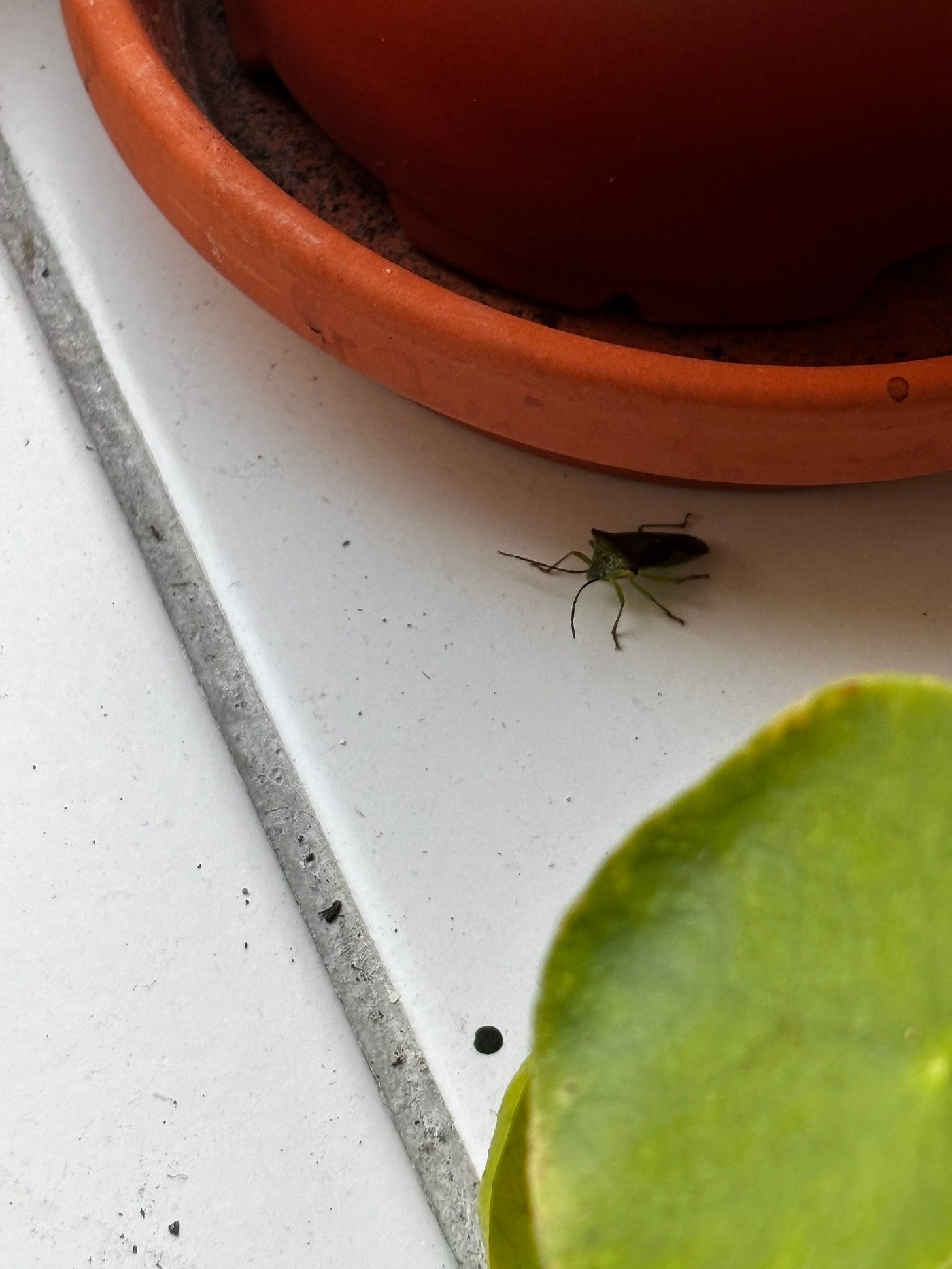 I did some googling. I found out that Gregory was a shield bug. It wasn’t a coincidence that he had graced our apartment or liked to hang out on our plants. As the weather gets colder, shield bugs look for opportunities to nest inside, feeding off the sap of houseplants. When I read this information my heart began to glow. Gregory had hit the jackpot!! Not only had he made it inside, he had just so happened to pick me. Me with my childhood dream of being an entomologist, me with my tender, tender heart. Once I found out that he had come here on purpose, I was determined to keep him safe. I closed the windows. It started to snow. I didn’t open them again.